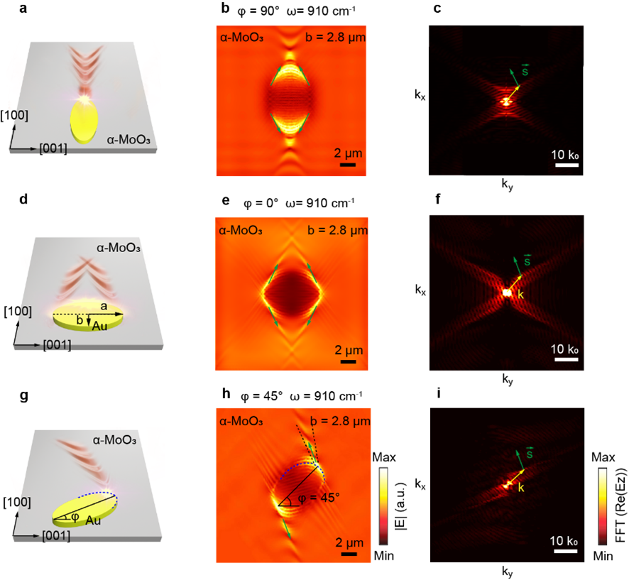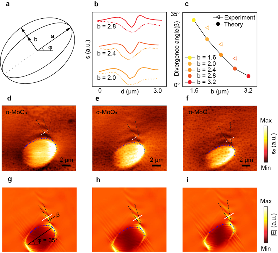 研究团队进一步通过理论模拟与实验验证,系统揭示了椭圆金盘结构参数对波束特性的调控规律。研究发现,通过调节金盘短轴长度(2.0-2.8 μm),可以实现对波束发散角的精确控制,这为极化激元波束的准直性调控提供了新的自由度。该方法展现出优异的材料普适性,在典型的各向异性晶体中也表现出良好的适用性。