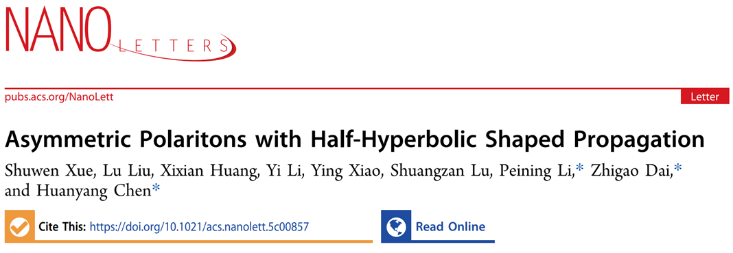 近日,厦门大学陈焕阳教授团队联合中国地质大学戴志高教授团队和华中科技大学李培宁教授团队,在极化激元调控领域取得重要突破。研究团队创新性地提出了激发半双曲极化激元的策略,成功实现了高定向极化激元的产生与调控。相关成果以“Asymmetric Polaritons with Half-Hyperbolic Shaped Propagation”为题发表于国际著名期刊《Nano Letters》,并被选为当期封面文章。