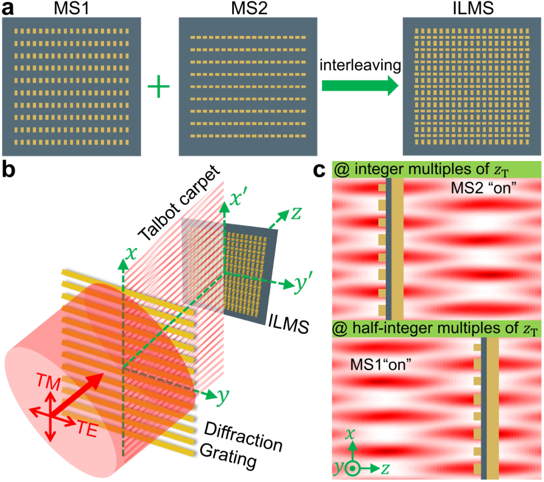 图1. 互嵌超表面结构和基于泰伯效应的寻址原理