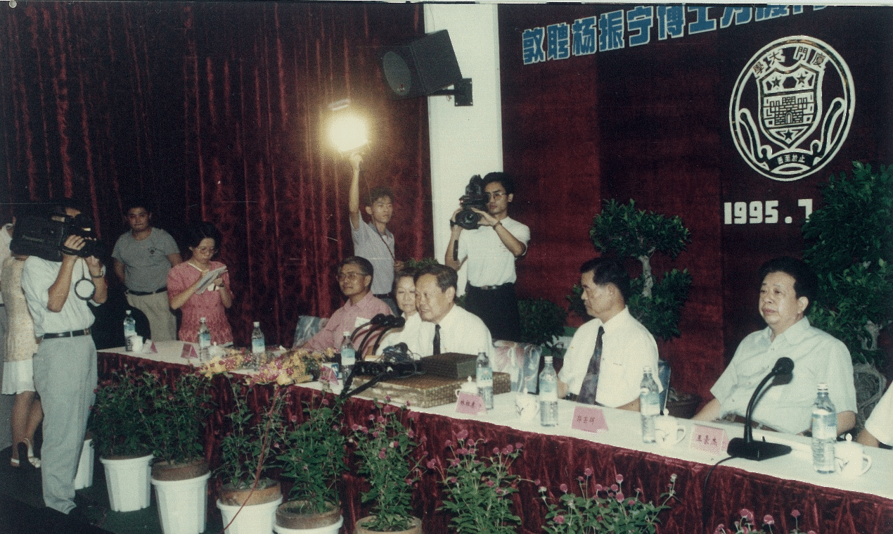 1995年7月31日至8月4日,第19届国际统计物理会议在厦门大学召开,这是中国首次承办高规格的国际物理学学术会议,得到了各方的大力支持,其中陈嘉庚国际学会也为此捐助了一批现代化先进的会议设备。杨振宁作为嘉宾出席会议,并被敦聘为厦门大学名誉教授。