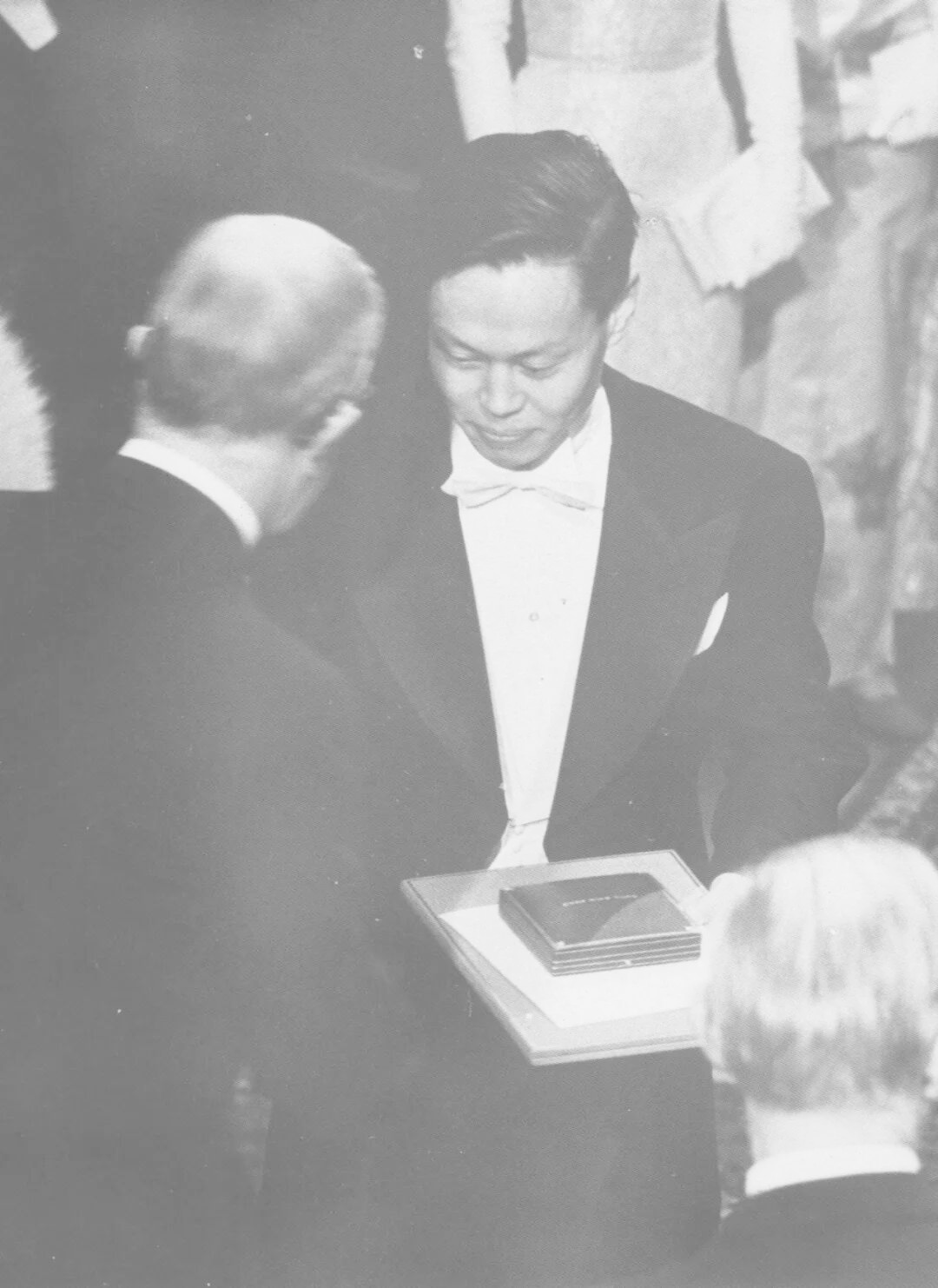 1957年杨振宁自瑞典国王手中接受诺贝尔奖章