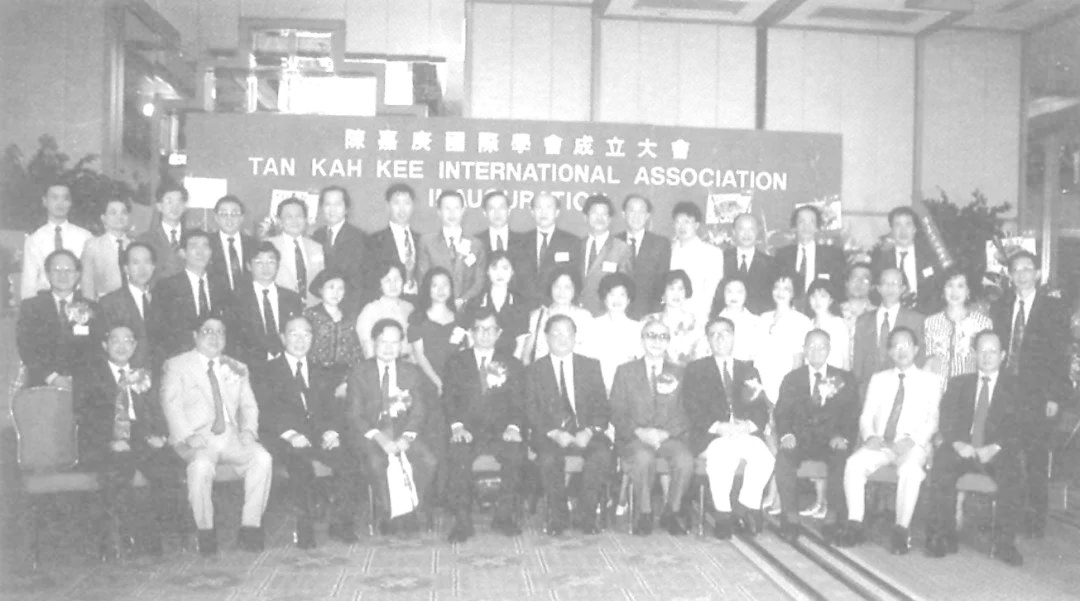 1992年8月,杨振宁(一排左四)出席陈嘉庚国际学会成立大会