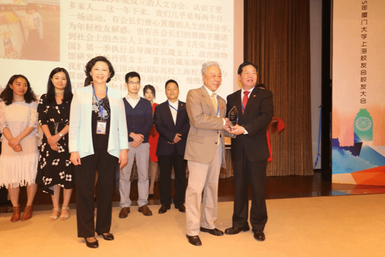 2015年5月16日朱崇实校长在上海为叶治平校友颁发"校友贡献奖"
