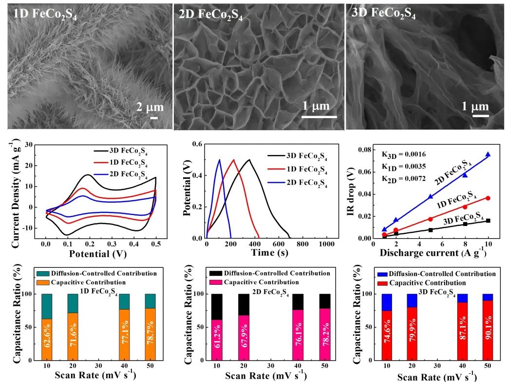 图1. 不同FeCo2S4电极的形貌和电化学性能。