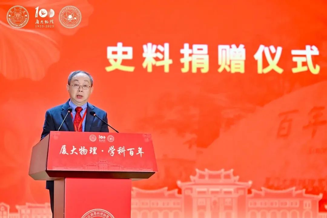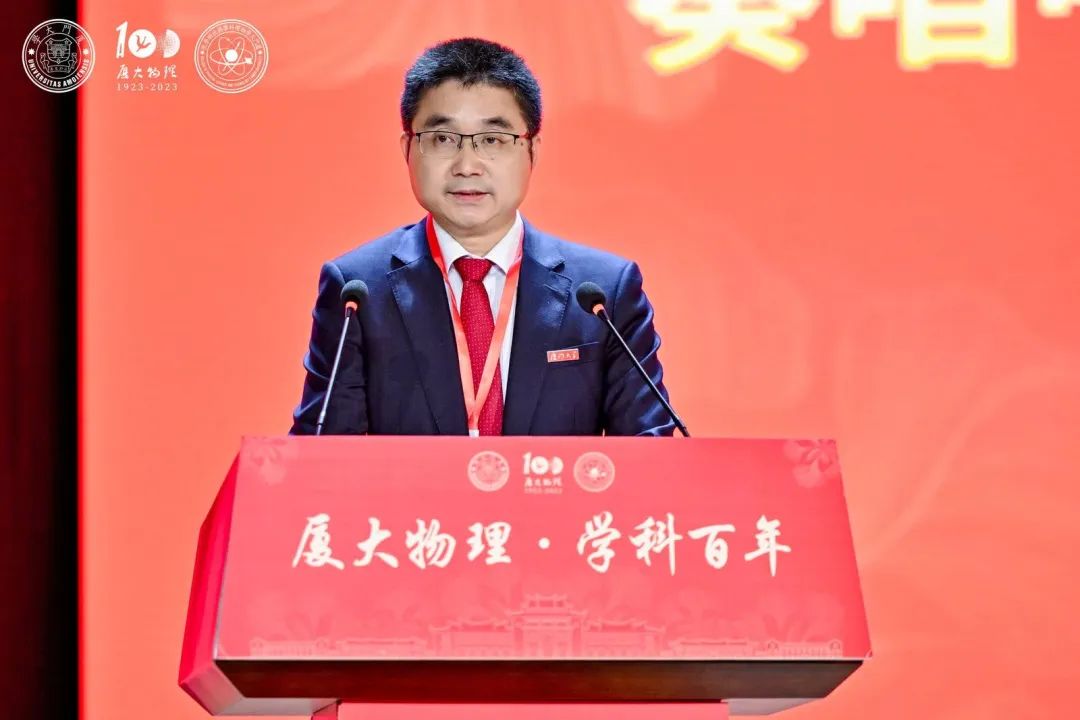 厦门大学校长张宗益在致辞中指出,秉持“自强不息,止于至善”的校训,承载着一代代科技先贤的初心与梦想,厦大物理学科始终与祖国和人民共命运、与时代和社会相偕行。他表示物理学科作为基础,加快推动物理学科高质量发展具有重要深远的意义。他对厦大物理学科的发展提出了三点要求:一是在新起点上续写更大荣光,以前沿的物理学培养为目标科学育人;二是要瞄准国际前沿及需求,解决“卡脖子”科研难题,聚焦科技创新和人才引进,抢占科技创新制高点;三是要解决社会中的经济发展中解决实际问题,深化拓展与地方政府、科研院所等科研创新工作,为服务构建科技创新提供支撑。