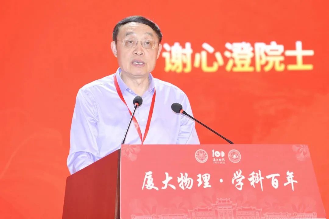 谢心澄院士代表北京大学发表了祝贺,他表示厦大物理坚持立德树人的根本任务,始终铭记为党育人、为国育才的理念,为物理学科发展培养了许多人才,他希望国内众多高校共同努力推动物理学科学研究及教学发展,培育全面发展的人才。