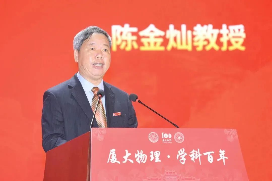 随后,陈金灿教授代表学院教师发言。他回忆了上世纪八十年代的厦大物理师生上下求索,开展物理学术研究的艰辛往事,他希望厦大物理教师勇于面对艰苦任务的挑战,用心攻克科研难关,投入平凡教学工作中,在新百年中开启中国高等教育事业的璀璨篇章。