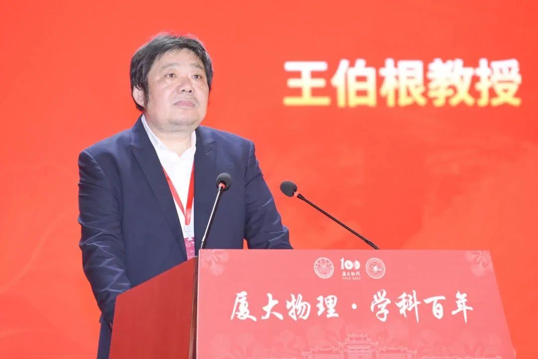 南京大学物理学院院长王伯根教授致辞,他认为厦大物理学科师资力量雄厚,长期承担国家重大科研任务,并取得高水平科研成果,培养了一大批创新人才,为我国物理学科发展做出了重大贡献。希望两院能够继续保持合作,以百年华诞为契机,两院同发展,共进步,为实现中华民族伟大复兴做出更大贡献。