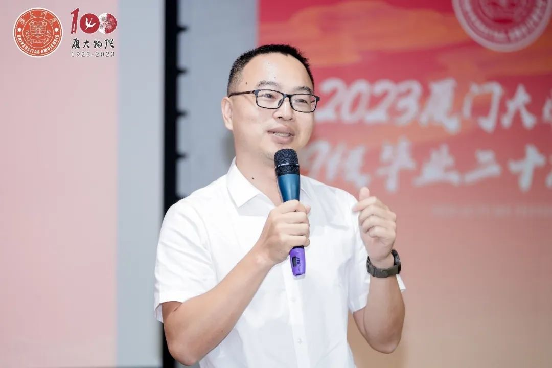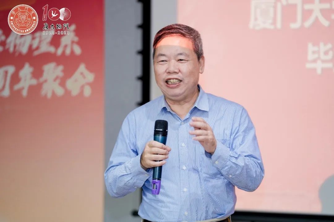 首先,时任物理与机电工程学院院长陈金灿致欢迎词,回忆学院的办学历史和与同学们度过的美好时光。厦门大学物理与机电工程学院于1999年成立,99级物理校友作为学院的首届学生,见证了一个新时代的开启。
