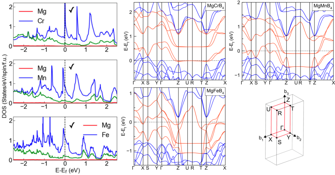 研究团队通过理论预测,利用高通量晶体结构搜索在层状三元硼化物中发现了一类具有结构稳定性和范霍夫奇点的新型材料ATB4,并且揭示了多种可调控的基态磁结构。