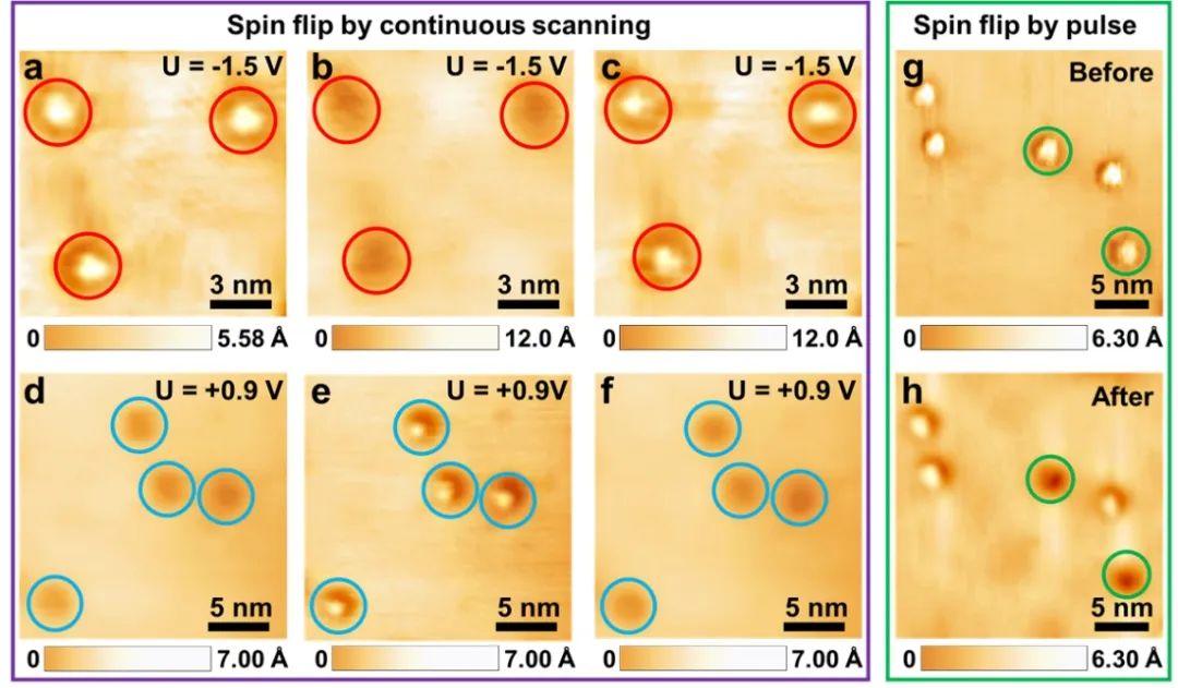 图4. 磁性扫描探针对全同Co量子点自旋态形貌的调控